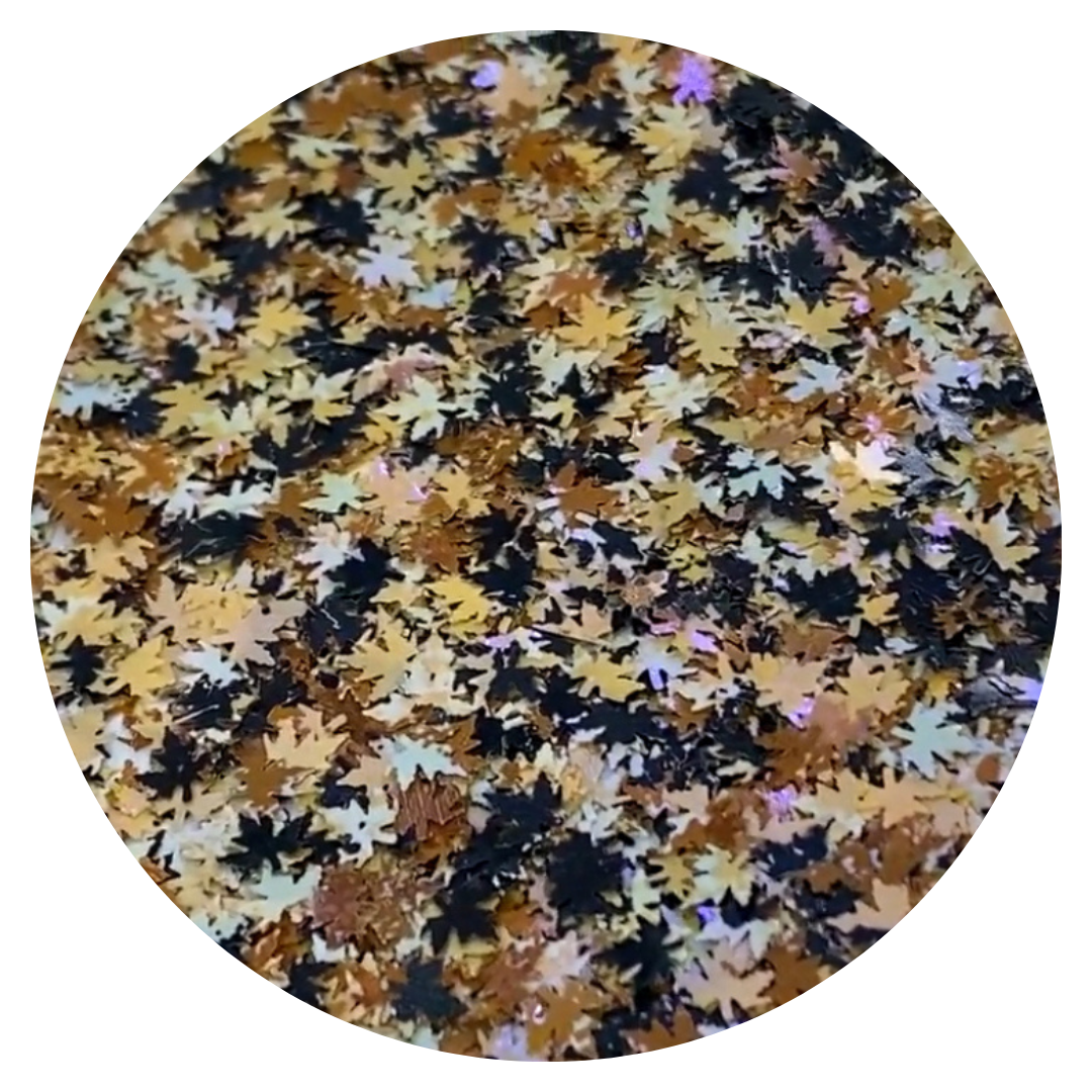 This rich, earthy mix of maple leaf-shaped glitter brings all the cozy autumn vibes—like crunching leaves, warm drinks, and sweater weather magic. 🍂🧡