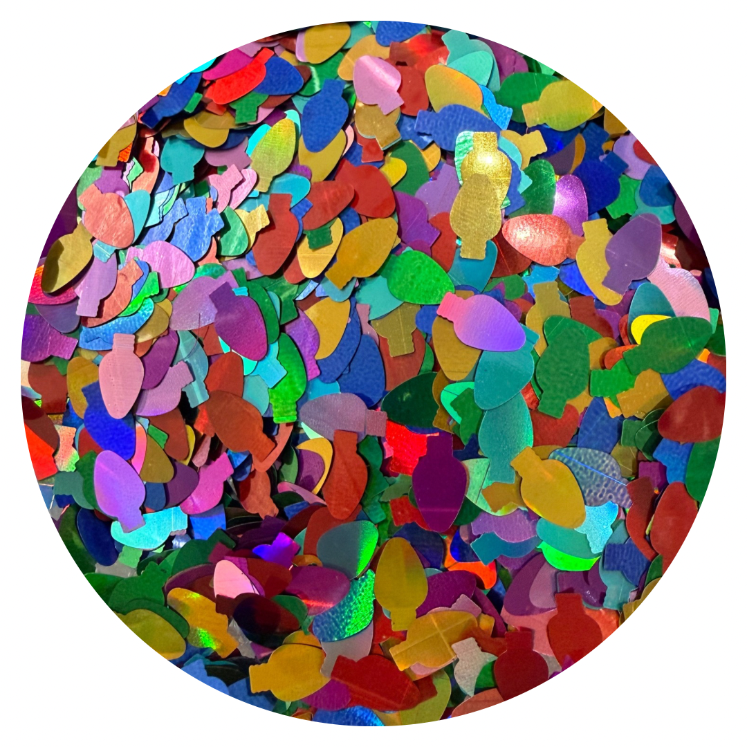 Light Show is a vibrant, rainbow-bright hair glitter gel packed with holographic Christmas-light–shaped glitters that shimmer like a festive strand wrapped around a winter night. Every tiny bulb flashes a different color—reds, greens, blues, purples, golds, and more—creating a prismatic sparkle that dances with every turn of your head.