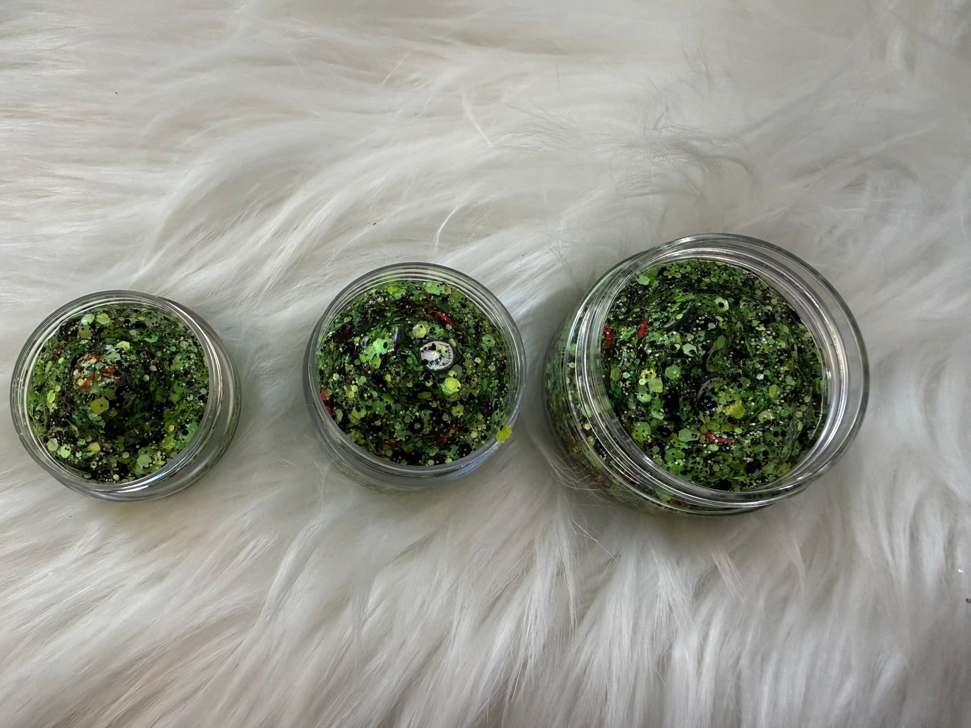 Welcome to the Neon Nightmare ā where spooky gets a shock of electric color ā”š A wild mix of lime green hexagons, neon yellow pops, and creepy clay faces that dance between playful and petrifying. This blend glows with chaotic energy, perfect for any Halloween look that refuses to hide in the dark.