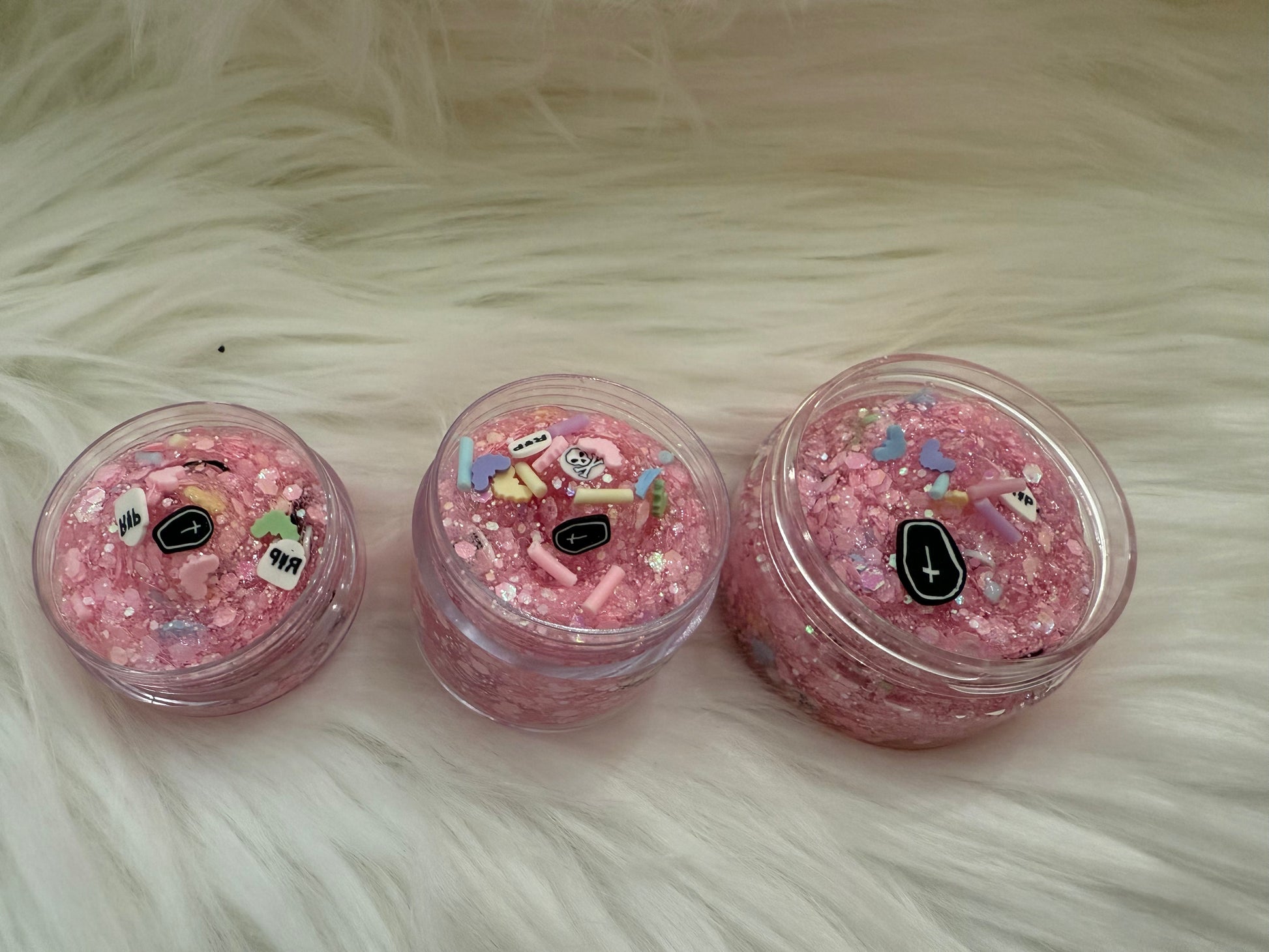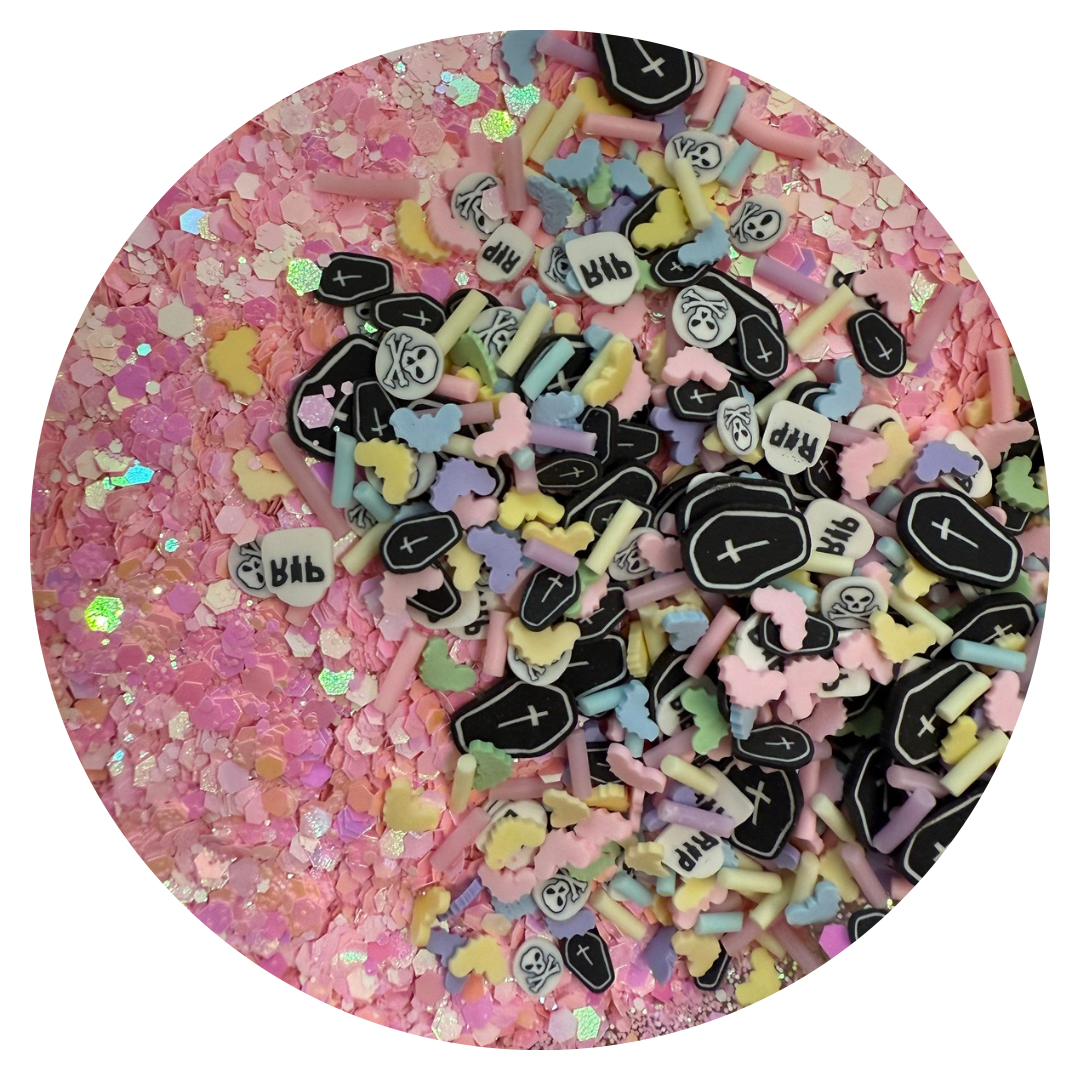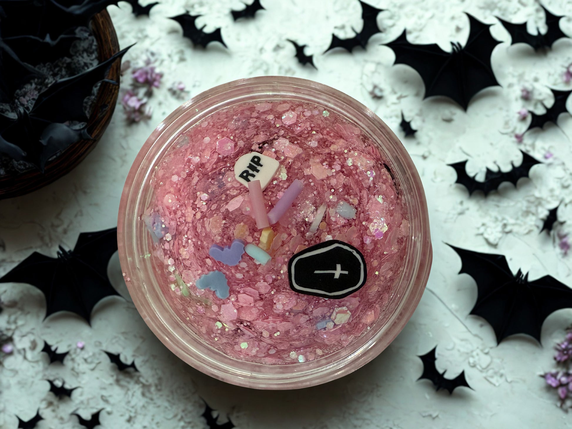 💖⚰️ Rest in Pink 🦇✨ A pastel pink Halloween dream come true—sprinkled with soft pastel bats, sweet candy-like sprinkles, and finished off with spooky tombstones and coffins. It’s the perfect mix of cute & creepy for your hauntingly sweet season! 🎀👻