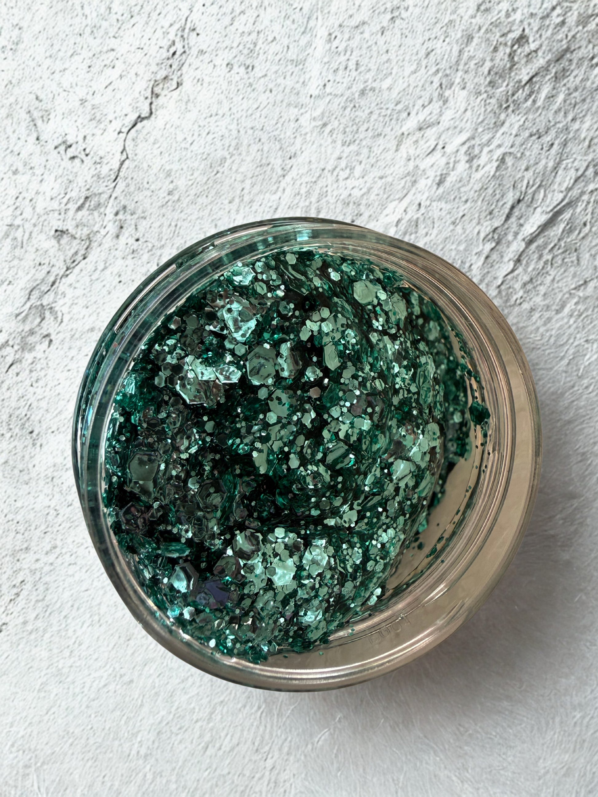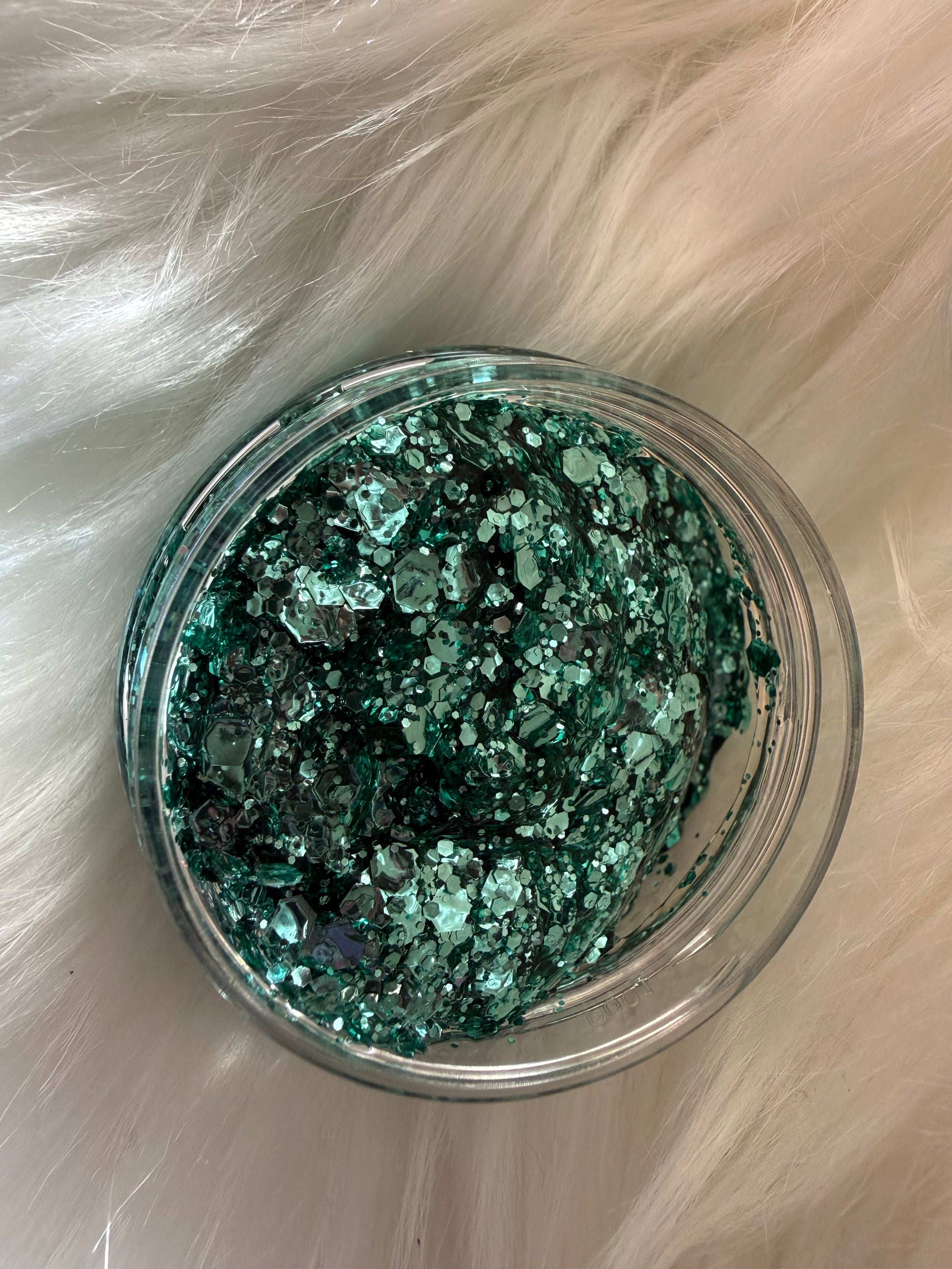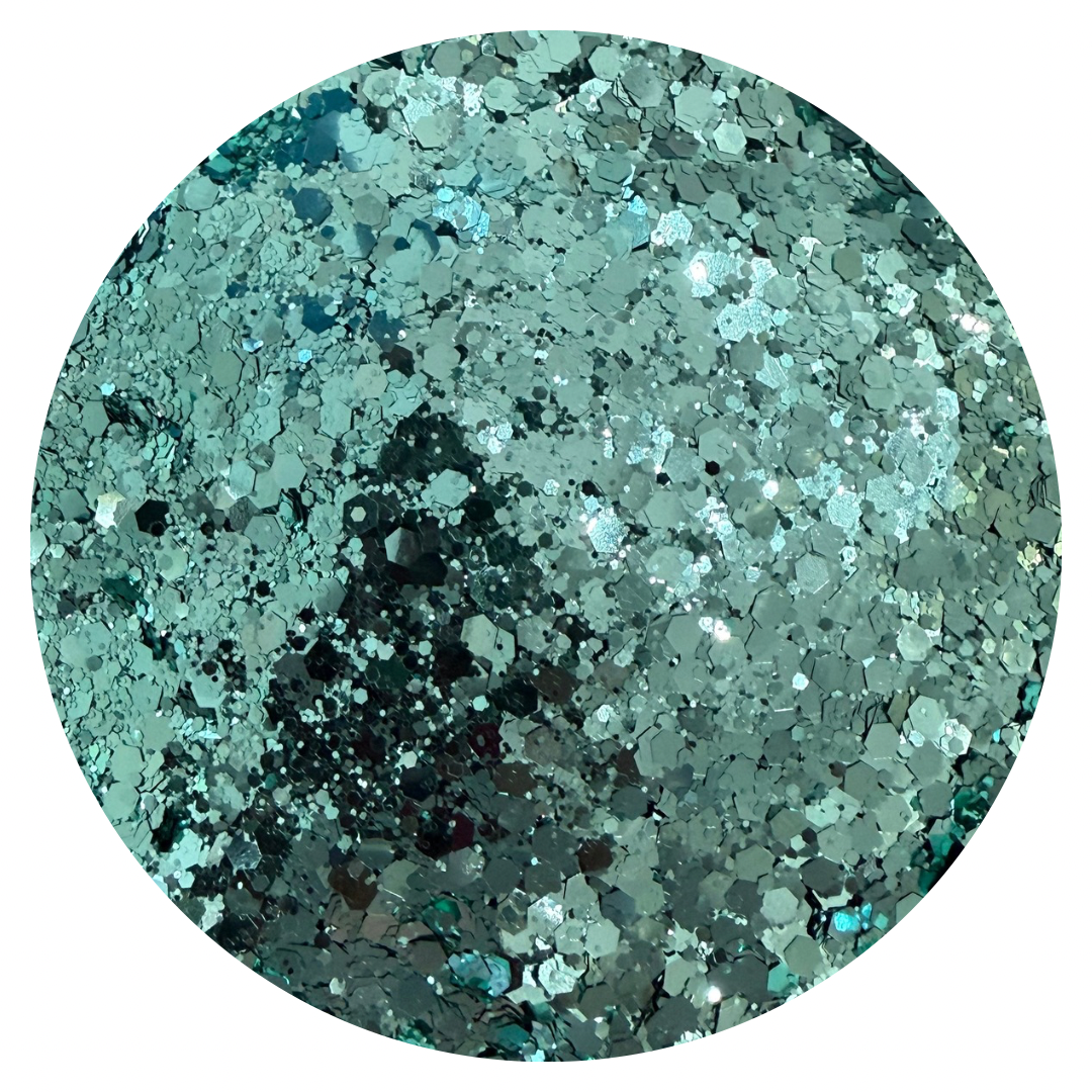 Step into the spotlight with Showgirl, a light-teal chunky glitter inspired by Taylor Swift’s Life of a Showgirl era. This mix sparkles like backstage lights hitting sequins—soft, shimmering teal that dances with every move. It’s bold but elegant, dramatic yet dreamy, the perfect glitter for anyone who was born to take center stage.